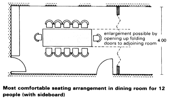 • Occupant Capacity: Allocate 1.5 m² per occupant around the dining table to maintain adequate movement space and ergonomics [2]. This ensures that diners have ample space to move their chairs and navigate around the table without feeling cramped.